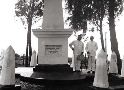Junghuhn_Vermoedelijk assistent-resident Emile Einthoven (geheel rechts) naast het graf van Franz Wilhelm Junghuhn te Lembang Geplaatst door buitenzorg on 27 maart 201727 maart 2017