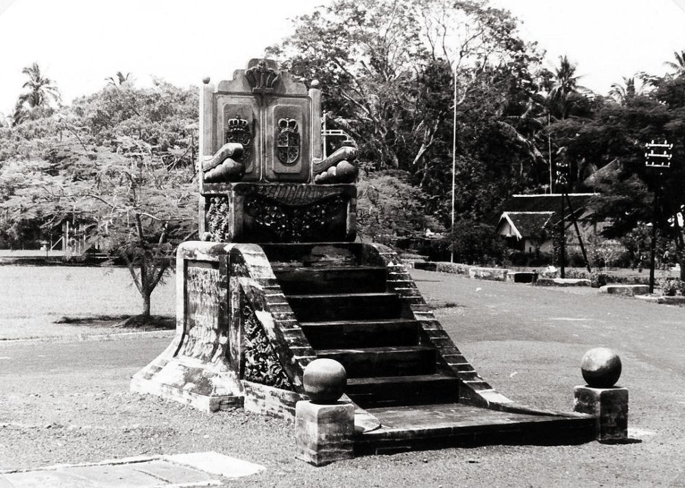 Verdere verwijzingen ontbreken helaas. Wel zijn bij het KITLV twee foto´s bewaard gebleven. Het monument lijkt een gestileerde koningszetel met de koningskroon en familiewapens (?) van het huis van Oranje en Lippe Biesterfeld.