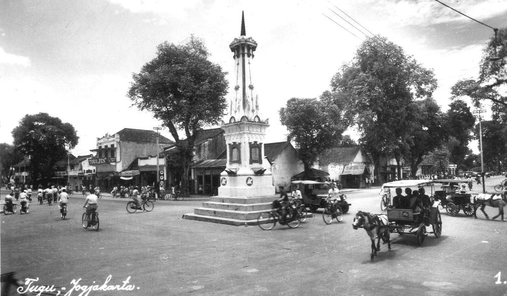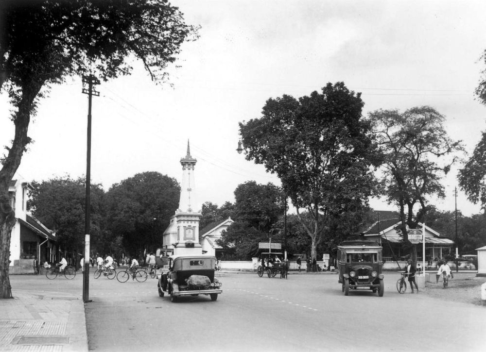 Dat is nu op Garebeg anders. Behalve dat de Witte Paal ontwijd is door een rood en groen verkeerslicht aan elke zijde, gaan er elke dag heel wat boze gedachten rond de paal en de inlander, die van buiten komt en hier de weg passeert, heeft nog alleen maar kans op een hard woord van een politieagent of automobilist in plaats van de zegewens voor zijn materieel en geestelijk welzijn.”