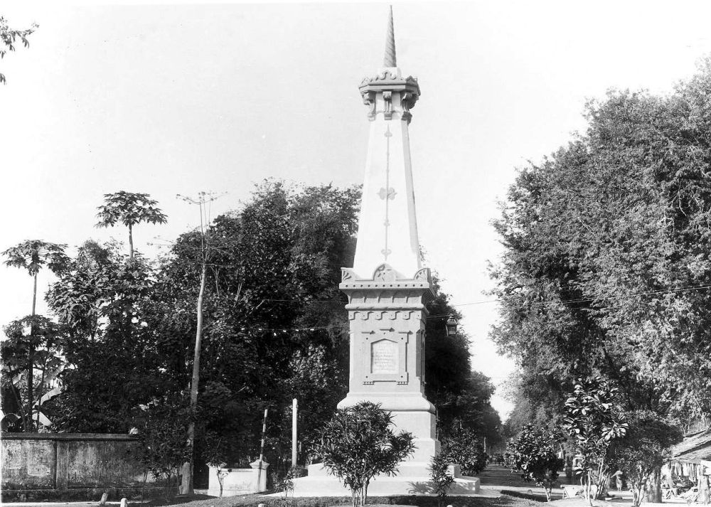 De Witte Paal, opgericht als gedenknaald in 1755 na de stichting van het Sultanaat Djokjakarta, was voor de onderdanen de wegwijzer. Van dit punt liepen zij recht op de kraton aan. De Paal was vroeger 25 meter hoog, doch bij de aardbeving van 10 Juni 1867, waardoor ook het grote residentiehuis instortte, viel een derde naar beneden. Pas in 1889 onder Sultan VI werd hij tot een hoogte van 15 meter hersteld. Het gedenkteken werd op de derde oktober van dat jaar plechtig ingewijd in tegenwoordigheid van de vorst en resident J. Mullenmeister.