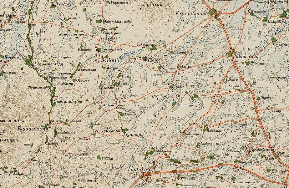 “De dessa Binangoen in Tjilegon is bekend om zijn mooie ananas. Daar vindt men vierhonderd bouws van die vruchten, zonder enig plantverband door de bevolking aangelegd. Wij maakten er kort geleden een wandeling, doch konden door de ananasstruiken inderdaad de grond niet zien. Midden in deze tuinen, ter hoogte van de dessa Tegaltongleng, vindt men een mooie gedenknaald op het graf van een Hollands officier, die in 1850 sneuvelde. Wij lazen op het grafschrift: „Hier rust Johannes Krieger de Back, geboren 22-2-1820 te Nijmegen, gesneuveld 3-3-1850 te Tegaltongleng bij een treffen van een onder zijn bevelen staand detachement Djagang Secars, sterk 25 cavaleristen, met de muiters.” Het zal voldoende bekend zijn, dat in 1850 een klein detachement der onzen te Tegaltongleng een nederlaag leed. Onder de gesneuvelden bevond zich ook Krieger, die zeer waarschijnlijk de aanvoerder van dit kleine detachement is geweest. Van de versterking is geen steen meer te vinden, doch de bevolking weet nog de plaats aan te wijzen waar zij gelegen heeft. Dit merkwaardig graf wordt goed onder houden en de bevolking ontziet het.”